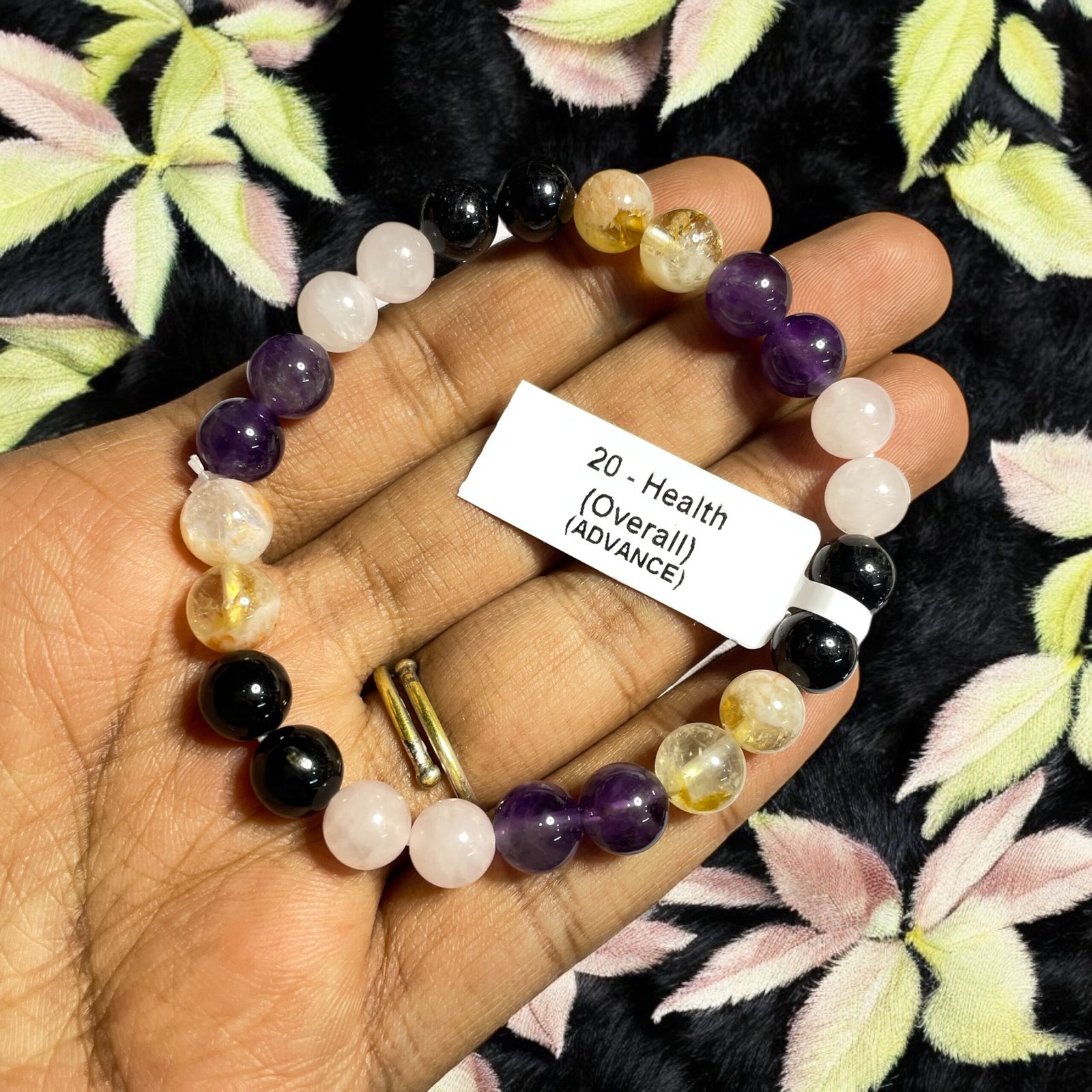 Amethyst promotes relaxation, reduces stress, boosts immunity, and supports overall healing. Citrine increases energy, improves digestion, supports metabolism, and encourages a positive mindset. Black Tourmaline protects against negative energy, helps detox the body, strengthens immunity, and brings balance. Rose Quartz heals emotions, supports heart health, improves circulation, and fills you with love and warmth.